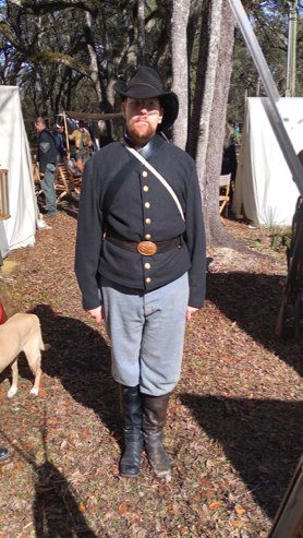 The 2nd FL contingent of Ordnance Sgt Sealing, Corporal Valentine, and myself were up at Reveille and Roll Call. A brief breakfast was provided by the 8th AL before the unit assembled for morning Colors. Following Colors the unit moved out into the field for the 10:00 am reenactment of the Clay's Landing skirmish. Our forces engaged a larger force of Union troops in a skirmish lasting about 30 minutes with few casualties.